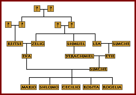 Fortunately two of Shmuel’s sons, GGF Yerachmiel and his eldest brother Shaye, emigrated to Argentina with almost all their offsprings, but three other siblings had stayed in “the Old Country”: Lea who married a Rasnikov, Etie who married an Adamovsky, and a brother named Moishe.